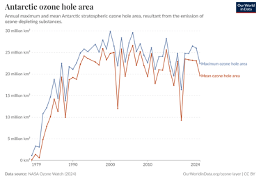 • NASA and NOAA ranked it as the 5th smallest since 1992, when the Montreal Protocol’s phase-out of ODS began taking effect.